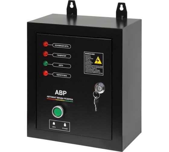 Блок АВР для дизельного генератора от 10 до 12 кВт включает в себя систему автозапуска (автоматического ввода резервного электропитания). При появлении основного источника электропитания происходит отключение электростанции. Блок автоматического управления для контроля наличия напряжения в сети.